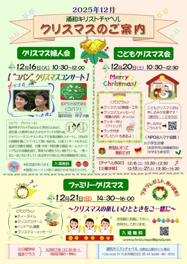 こんな不安な時代だからこそ、聖書の話を聞いてみたいという方もいらっしゃるかもしれません。