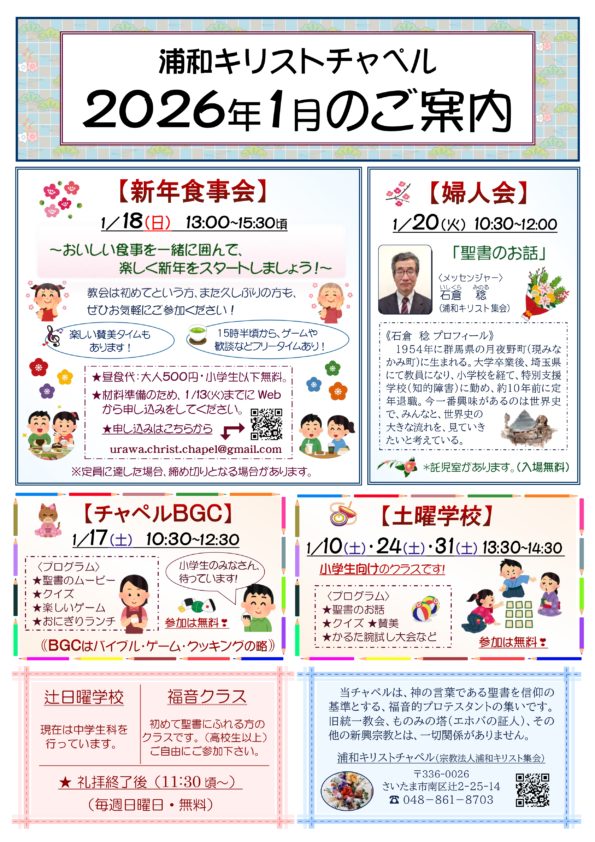 メール(urawa.christ.chapel@gmail.com)または、お問い合わせフォーム からお送りください。