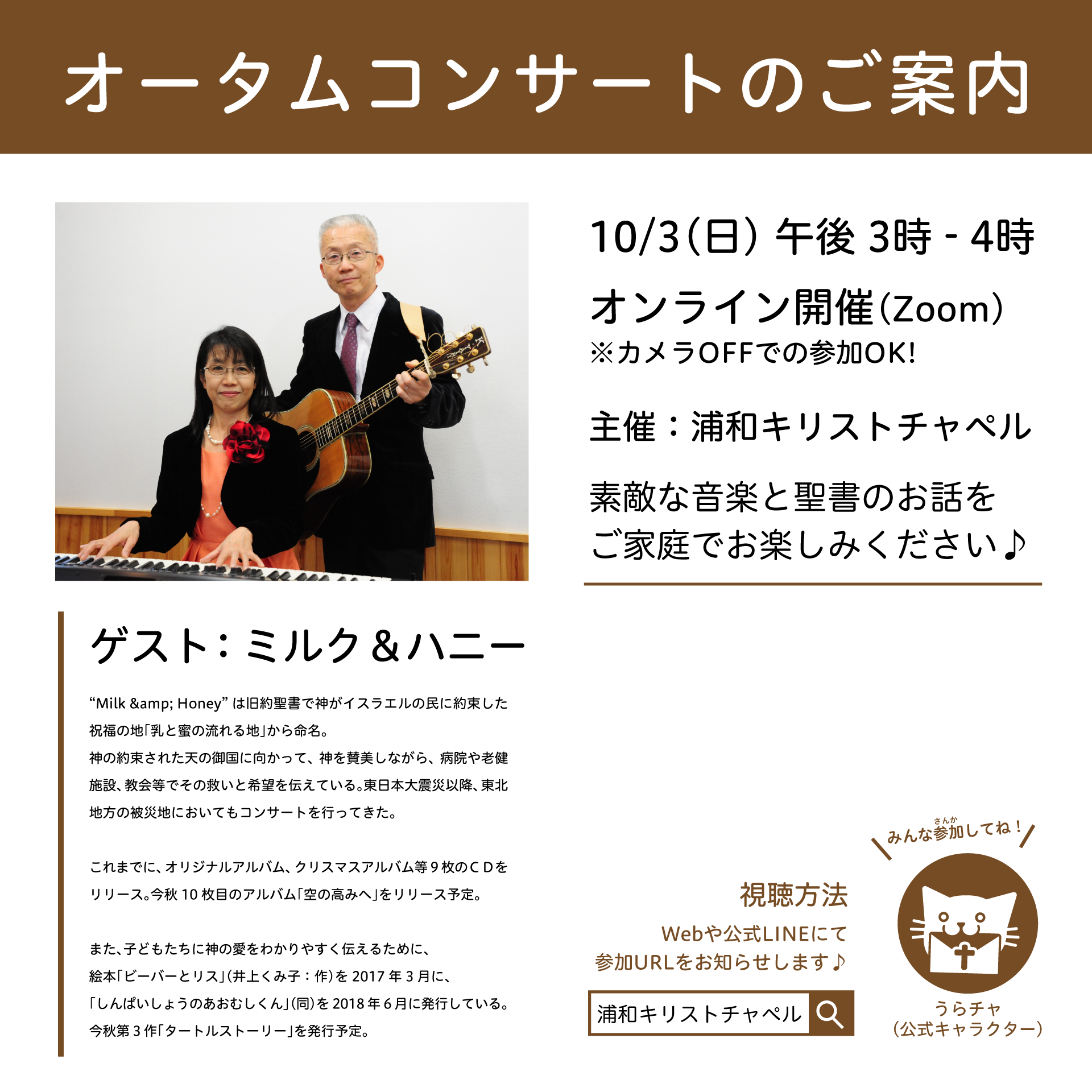ミルク&ハニーのご夫婦ユニットによる賛美と聖書のお話の時間です!