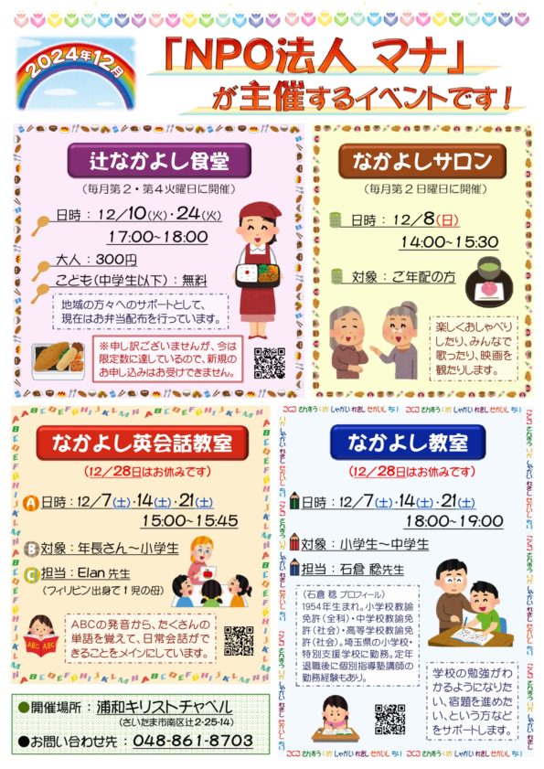 日程 12 月 7,14,21 日(土) 15:00-15:45
