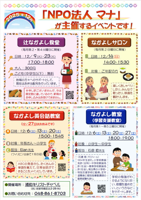 NPO法人マナ 12月の予定